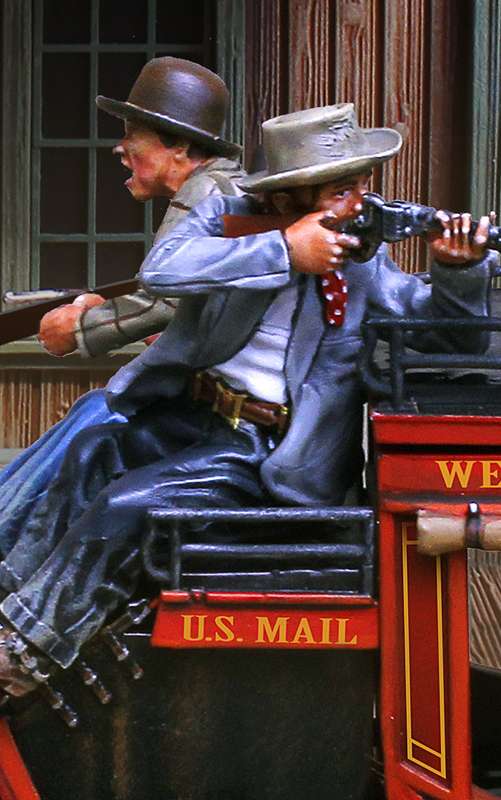 Our firing from the conductor on our stagecoach figure sports a great 1870’s Winchester. Handpainted 1/30th scale metal figure.